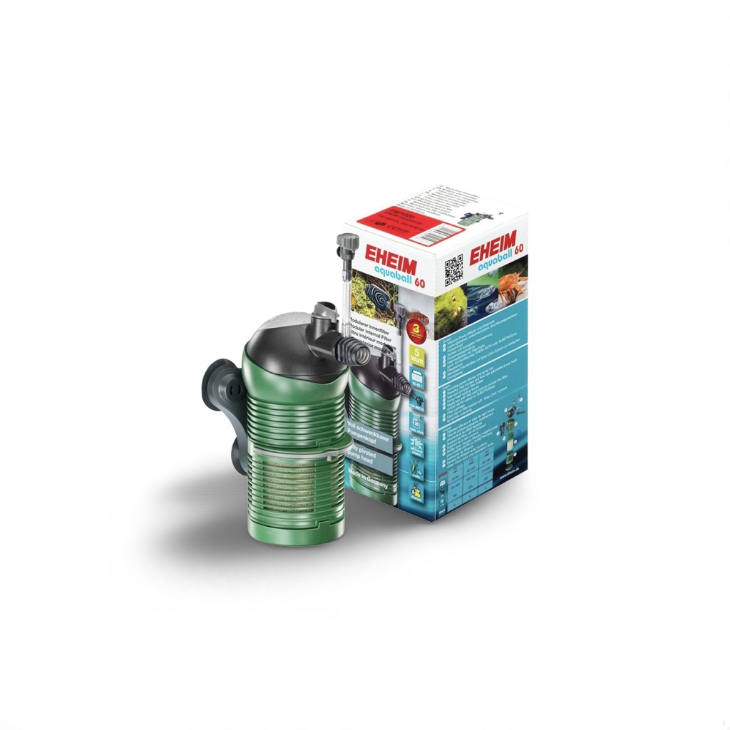 Eheim Aquaball, met inbegrip van de powerdiffuser voor sterke zuurstofverrijking en spray bar voor natuurlijke oppervlakte beweging. Hij is krachtig, volledig draaibaar en heeft een debiet verstelbare pompkop. Daarnaast heeft de Eheim Aquaball een nieuwe, veilige en compacte filterhouder. De filter media box bevat een schuimfilter pad (Aquaball 60/130/180); opties omvatten fijn filter pads, EHEIM AKTIV of SUBSTRATpro. Nieuw is de “Easy Click”-vergrendeling voor eenvoudige aansluiting en onthechting van de filtermanden. Hij kan gebruikt worden in zoet- en zeewater.